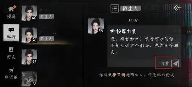 5、有好友一起玩的可以跟好友互相按摩,然后互相打赏,陌生人有的不会给你打赏的。