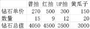 “普抽*15/红抽*9/UP抽*12/黄瓜子*20”
