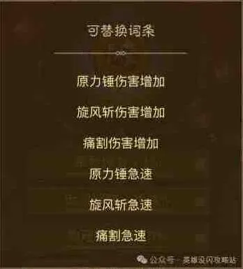 在早期没有恶魔钩刺的前提下,可以考虑使用撕裂急速增加撕裂播放速度,后期如果携带狂乱,则优先考虑狂乱急速,伤害增加类词条基本不考虑