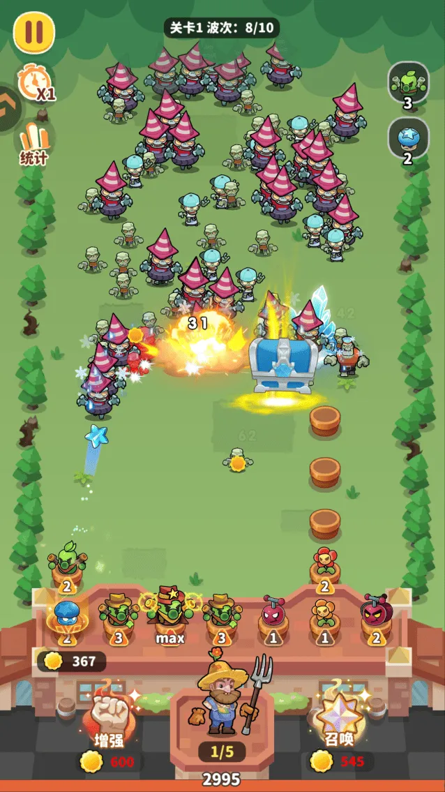 10、商城中可以召唤更加强力的植物,将其换上阵即可。