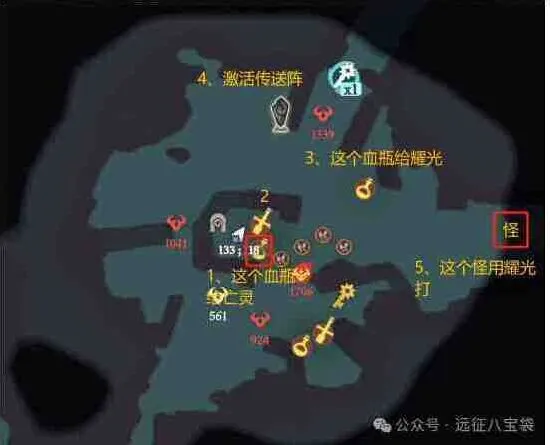 路上血瓶给亡灵,清怪按下图顺序