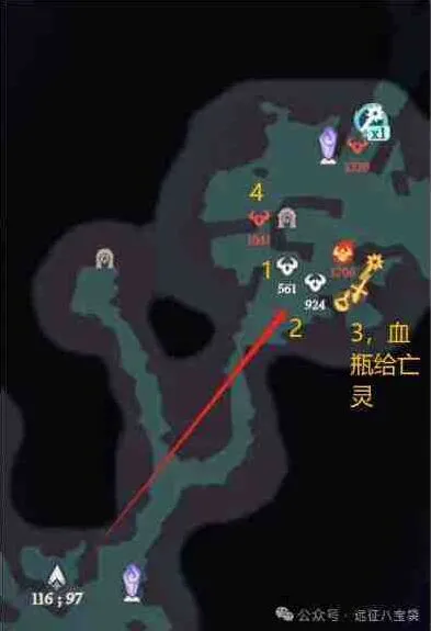 按下图的顺序清怪拿奖励,血瓶给亡灵