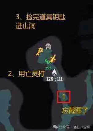 进入山洞后的步骤顺序如下图: