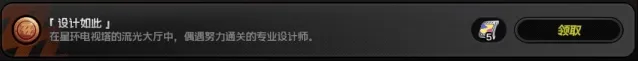 在星环电视塔的流光大厅中,偶遇努力通关的专业设计师,同样是如果没有就调整时间或者小退重进直到他们出现为止,对话即可获得成就