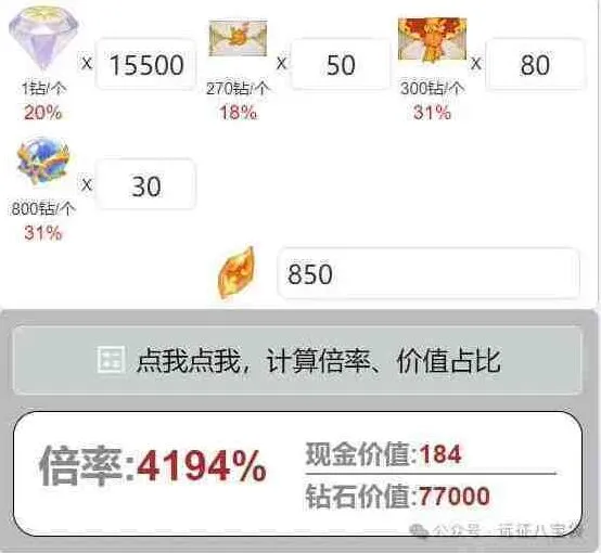 钻石*15500,普抽*50,up抽*80,水晶*30