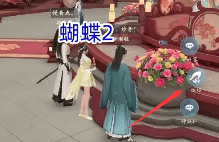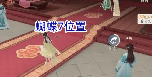 1、夜晚后按照顺序抓捕蝴蝶,在珍珠旁边抓到第一只蝴蝶。