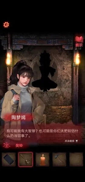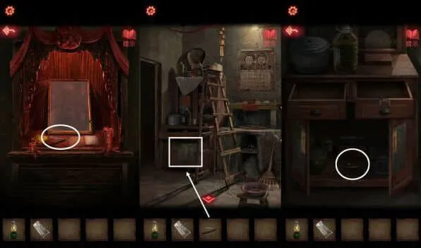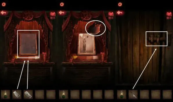 13、依据神龛书上的内容,口红点击摊子,把绳子全部涂红,坛子会破碎,掉落半张照片。