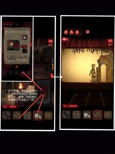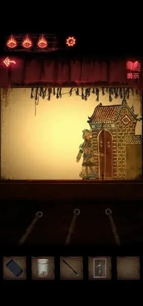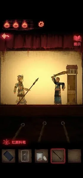 5、用钢尺切断小木偶的提线,获得它手中的钉子,这个时候戏台会垮掉,后面出现一具大木偶,需要工坊里面的大刀。