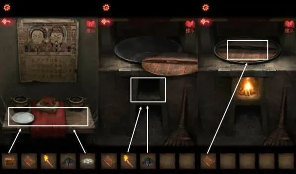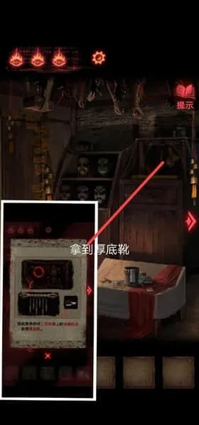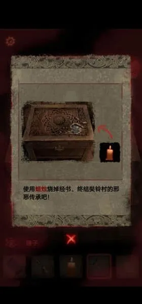 10、最后一步我们使用锤子敲碎经书的盒子,把手上的经书烧毁,就能够逃出这个村子了。