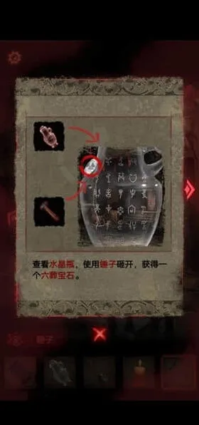 5、进入工坊,查看水晶瓶,用锤子砸开可以获得一个六葬宝石。