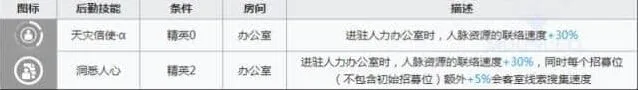 月禾的基建技能倒是也有点用处,可以让自己在人事部上班的同时加速一下会客室的线索获取速度,但是因为不加成制造站和贸易站,所以这个技能也是不属于基建的核心技能,为了基建也是不需要去强抽的。