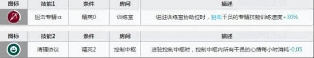 送葬人的基建技能也是比较一般,是平平无奇的狙击技能加速和中枢减少心情消耗,肯定是不属于基建核心干员了。