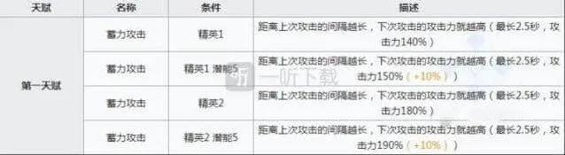 白金的1技能是非常平庸的攻击力提升型技能,虽然优点在于攻击力加成还行,而且技能的回转和整体覆盖率也不错,但是这个普通的加攻技能不是白金的核心,我们简单略过就好,一般7级就足够了。