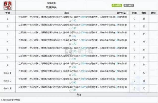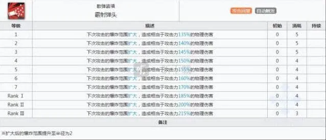 陨星的1技能,相信大家都看过一个gif吧,那就是陨星一炮干掉大片大斧,但是其实那是在很多拐的辅助下才达成的效果,其实说到底,如果其他干员也配上那么多拐的话,表现效果也是不会差的。但是陨星的主要输出技能还是1技能,优点在于巨大的溅射范围和尚可的技能倍率,可以说在2个技能中最值得专精的还是1技能,不过就像一听小编说的,对单输出不要指望陨星,陨星可以达成群体输出的职责就可以了。