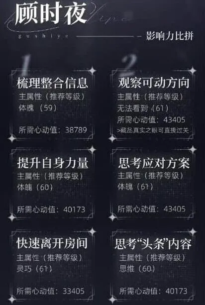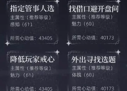 《世界之外》是一款恋爱剧情游戏,数值达标才能解锁后续。小编梳理夏萧因沉冤昭雪这条任务时,思维、魅力、感知和体魄都得按需分配,整个过程像在做资源配置分析。范围跨度适中,小编认为主属性达标是关键,卡关时先查短板。感到兴趣的用户跟着小编一起看看吧!