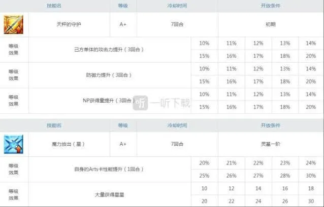 阿斯特莱亚的3技能虽说要吃5个暴击星,充能还只有固定的20点,略微有点尴尬,但是集星和暴伤效果让阿斯特莱亚也可以担任暴击手,而且因为阿斯特赖亚的红卡有2张,搭配梅林的话,暴击的爆发输出能力不容小觑。而且3技能在满级的情况下冷却只有4回合,无论是充能循环还是暴击输出,这个冷却都算是非常不错了。在3个技能中升级优先度次于2技能。