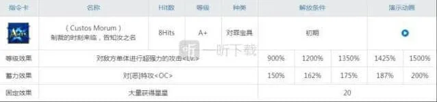 阿斯特赖亚的3个被动技能也算是非常的实用,女神的神核的弱化耐性还是比较高的。而单独行动和阵地建造也进一步强化了露维娅的暴击能力和np回收。