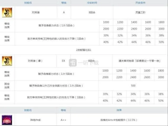 山鲁佐德的3技能战续持续时间高达5回合,而技能冷却在满级的情况下只有6回合,几乎全程可以保持战续效果,而且还有对王属性敌人的大幅降攻,配合队友的降攻或者加防技能,可以让王属性敌人无法对我方造成伤害。附加的群体战续看起来不错,但是因为持续的回合数实在太短,而且只有区区500血,实在是不太好用,就当作防翻车的附赠属性吧。