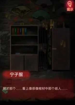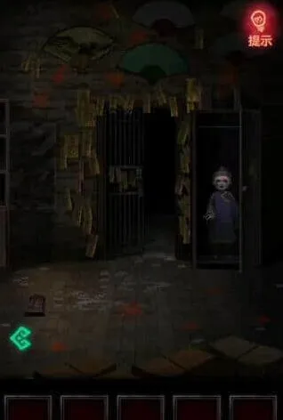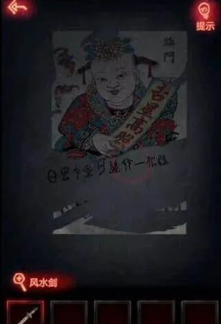 11、我们到纸人那点击后面年画,用宝剑打开画获得密码提示,密码是地下室上面扇子的密码。