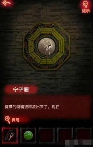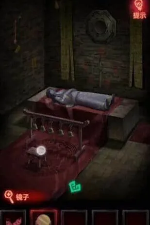 16、最后我们到娘子身体房间点击八卦镜,用弹弓点击镜子打碎,再点击铃铛,重新开始招魂,点击铃铛过剧情游戏就到这里完结了。