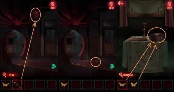 14、然后我们用弓箭拿气球上的蝴蝶饰品,用蝴蝶饰品打开拜堂桌上的盒子即可获得玉手镯。
