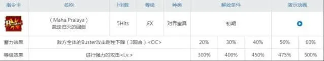 最后我们来看看芭娜娜的被动技能,神性ex和狂化ex,不愧是异闻带之王神周那,属实牌面。不过其实说起来只有狂化的红魔放有用就是了。
