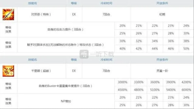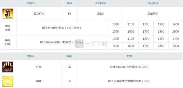 技能的话,狂周那的1技能不仅是一个非常优秀的加攻技能,而且还附加了对弱化状态特攻的效果,因为宝具本身就前置了红卡耐性下降,一般触发特攻是绝对没有问题,就算是miss了,还可以用御主衣服的眩晕或者是梅林的2技能降爆,这些都属于弱体状态的。因为加攻和特攻直接影响伤害,所以1技能的升级优先级仅次于2技能的充能。
