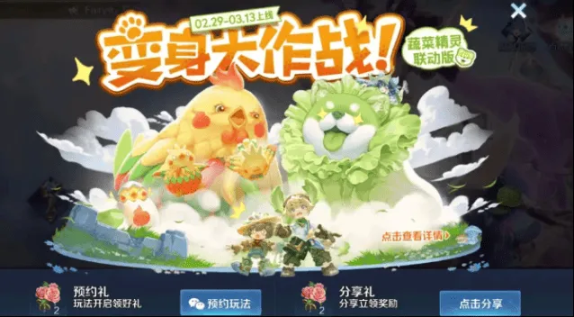 除了有新皮肤外,此次还会开启一个限时玩法,就是之前的变身大作战,只不过这次变身的角色将变成蔬菜精灵,有我们熟悉的白菜狗、辣椒鸡、柠檬鲸等人气角色,并且每一个角色都有配备专属的技能。