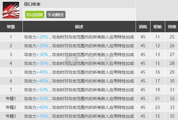 朴实无华的增幅技能,较高的攻击力使得携带一技能的送葬人成为了开罐子的一把好手,经过测试,在开启一技能后送葬人的有效杀伤力从原本的1000甲左右提升到了2000甲左右,简单来说就是可以用来应对一般的高甲敌人了,相当实用。