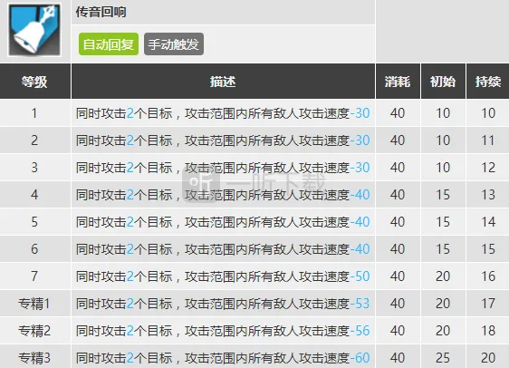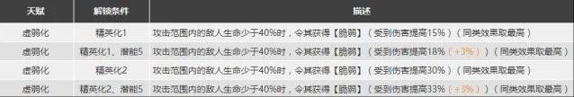 二技能是范围性的大规模减防技能,因为能够一次性降低物理与法术防御的原因,和输出位的爆发技能对齐就能够有很不错的输出效果,并且由于该技能是百分比减伤技能,即便是面对一些双防数值较高的敌人也能够有效削弱敌人的防御。不过也正是因此,二技能面对本身防御就较低的敌人是反而会表现不佳。