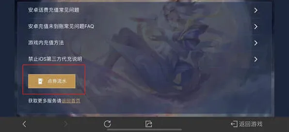 3、点击充值,等界面跳转后在屏幕左边找到“点券流水”,就能看到账号的充值记录了。
