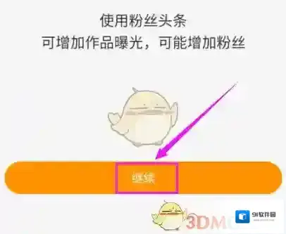 6.接着会来到另外一个界面,我们不要管,点击“继续”,接着就来到了选择作品上,选择完后,我们的粉丝头条就开通了。