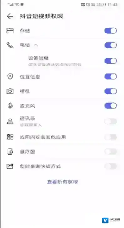4、找到抖音,勾选抖音的存储和相机权限即可