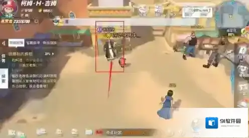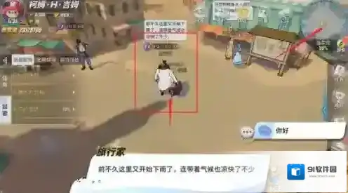 告示牌附近的旅行家咨询你穿越沙漠需要准备些什么东西,推荐防风衣,但因为他体型宽大,只能定做,现在布店老板的排号又排到三个月之后,不知道该怎么办,并说道帮他解决问题会给一张藏宝图,咱们先去问问布店老板呗。