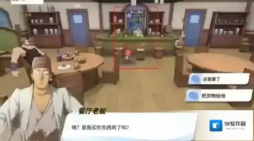 码头过来房子的后方,有一个物资,物资提示是“食材”。需要去餐厅找老板问是不是他要的物资。