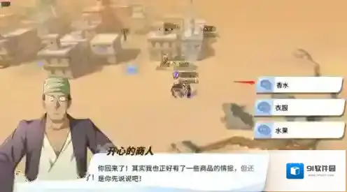 来到沙漠的商人,给他推荐卖油菜花特有的香水,商人听后感觉会大赚一笔,二话不说就给你奖励了。不知道选贩卖衣服和水果会发生什么。