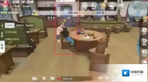 他躲在餐厅的吧台下方,把自己头遮住了,以为这就找不到他了,但始终还是小孩子呀,找到他后,拿到耳环还给居民就完成任务了。