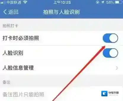7、最后,点开“打卡时必须拍照”和“人脸识别”的按钮即可。