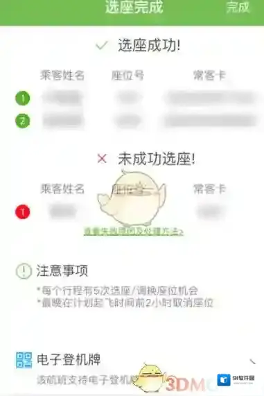 6.进入“选座完成”页面,可以看到选座是否成功: