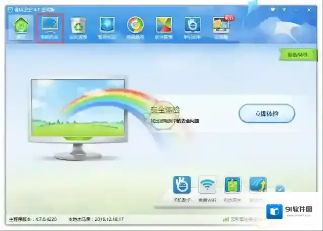 ①打开金山卫士,点击“系统优化”;
