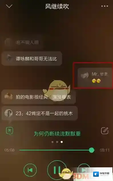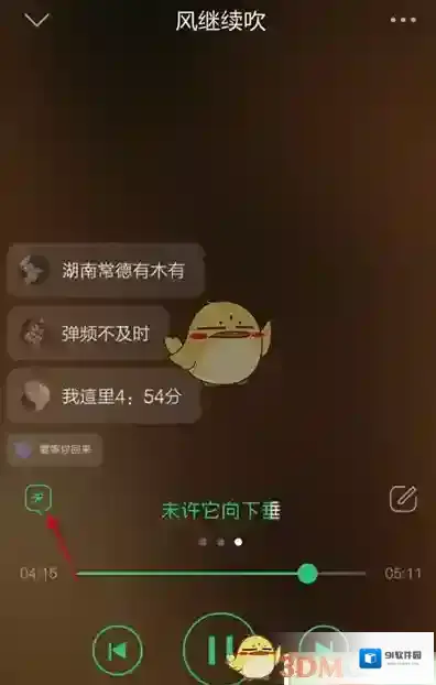 2、然后我们进入单首歌的播放界面,左滑界面可以进入发送弹幕界面了