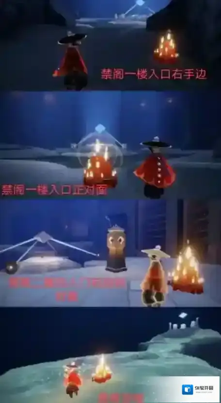 1.第一个大蜡烛在禁阁一楼,入口的右手边。