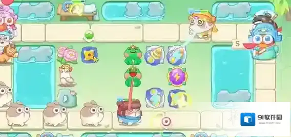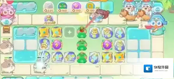 2、在中间建造一个青蛙,集中火力清理中间的道具。