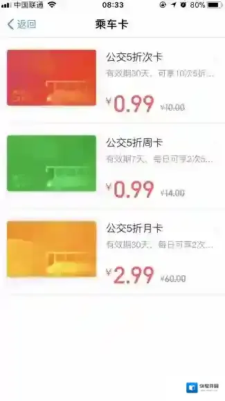 5、这个时候,大家根据自己的需求进行选择,如果你经常坐公交的话,可以选择第三个2.99元的月卡,以后每次乘公交只需0.8元一次。