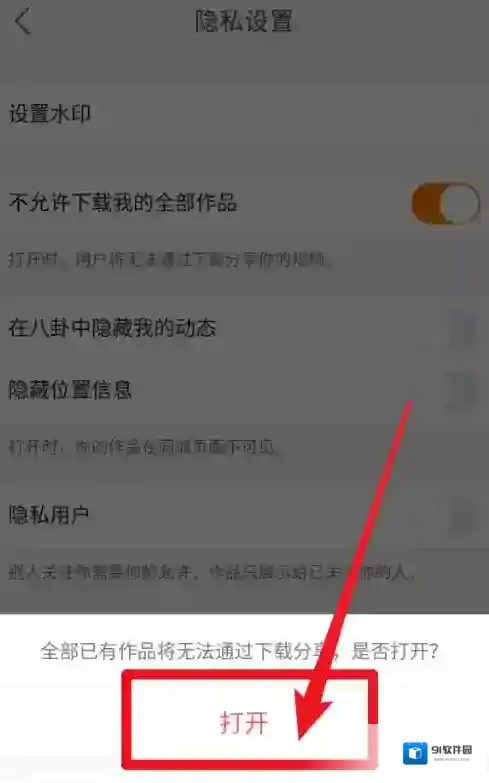 点击开启不允许下载我的全部作品(默认是关闭的),