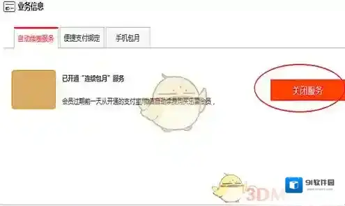 5、在“业务信息”区域的“自动续费服务”菜单下,单击“关闭服务”按钮。