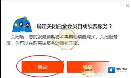 6、弹出“确认关闭会员自动续费服务”对话框,单击“确定”按钮。