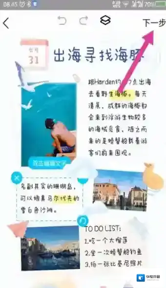 7、手帐写完了后,点击右上角的下一步。如图所示