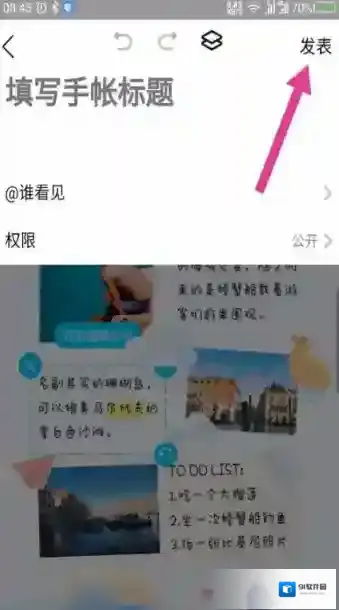 8、填写手帐的标题,就可以点击发表了。如图所示