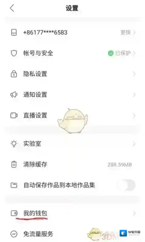 3、点开“设置”命令,在设置的页面找到“我的钱包”: